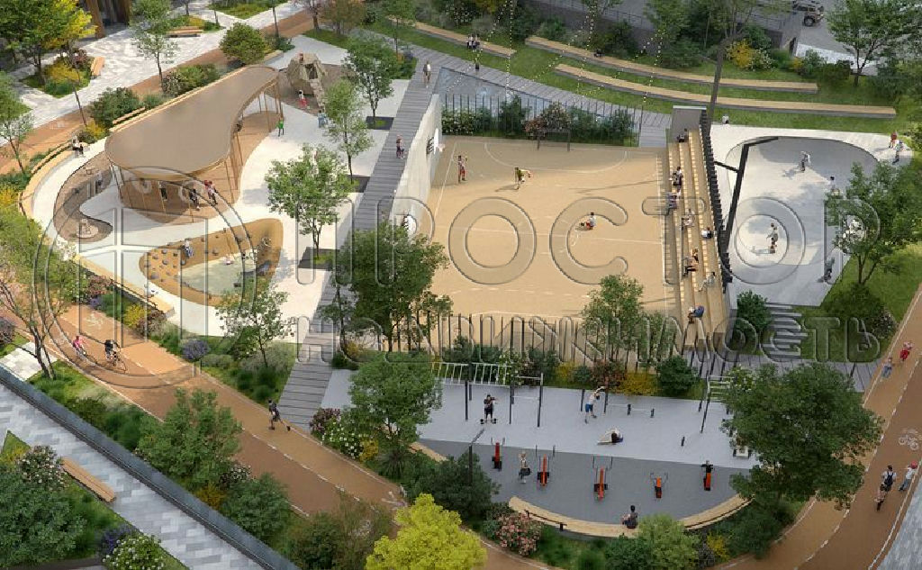 В закрытом от автомобилей дворе комплекса выполнен ландшафтный дизайн, предусмотрены отдельные игровые зоны для детей̆ разных возрастов и воркаут-зона. Комплексное развитие территории предусматривает строительство двух детских садов, школы, поликлиники и полицейского участка. Первые этажи зданий отведены под коммерческие помещения, на территории комплекса открыты спа-комплекс и фитнес центр, продуктовые магазины, рестораны различных направлений, сетевые кофейни и суши-бары, салоны красоты, кабинеты косметологии и барбершопы. Для владельцев автомобилей предусмотрен подземный паркинг с кладовыми помещениями, и помещениями для хранения велосипедов.