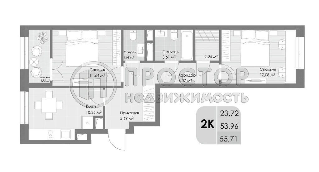 Продается 2-к квартира в современном жилом квартале бизнес-класса "Дюна"